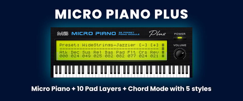 Upgraded version of the original Micro Piano VST/AU plugin. Added 10 high-quality pad layer sounds and a single-finger chord mode with 5 different chord shapes.